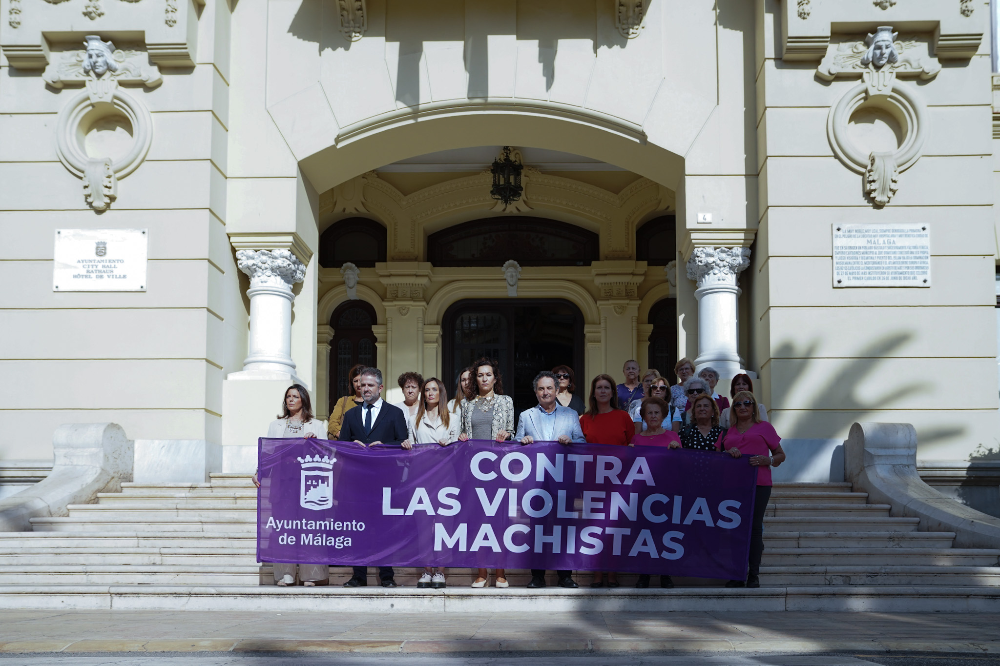 las escaleras exteriores del edificio del Ayuntamiento.